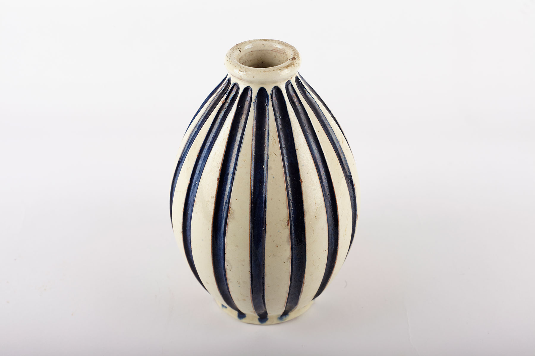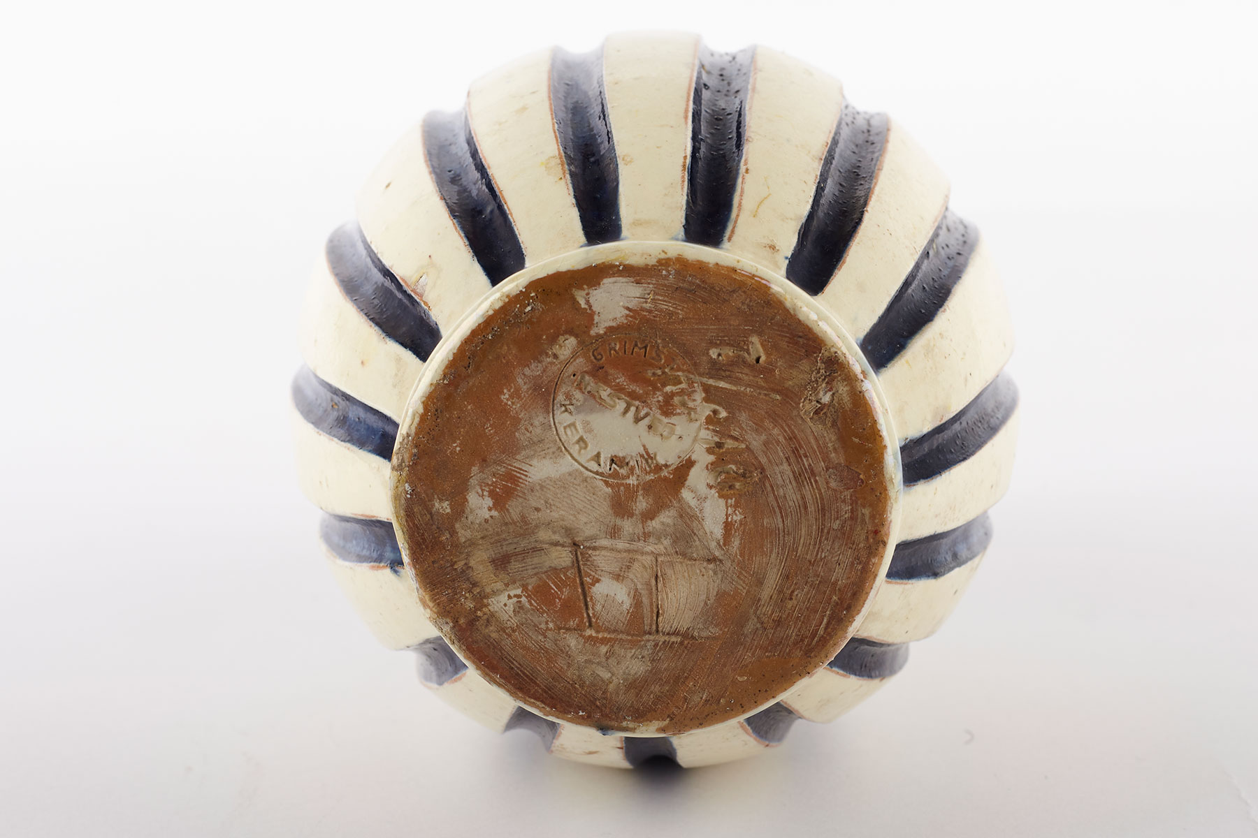 A very rare and beautiful vase with grooves, glazed ceramic and stamped on the bottom.